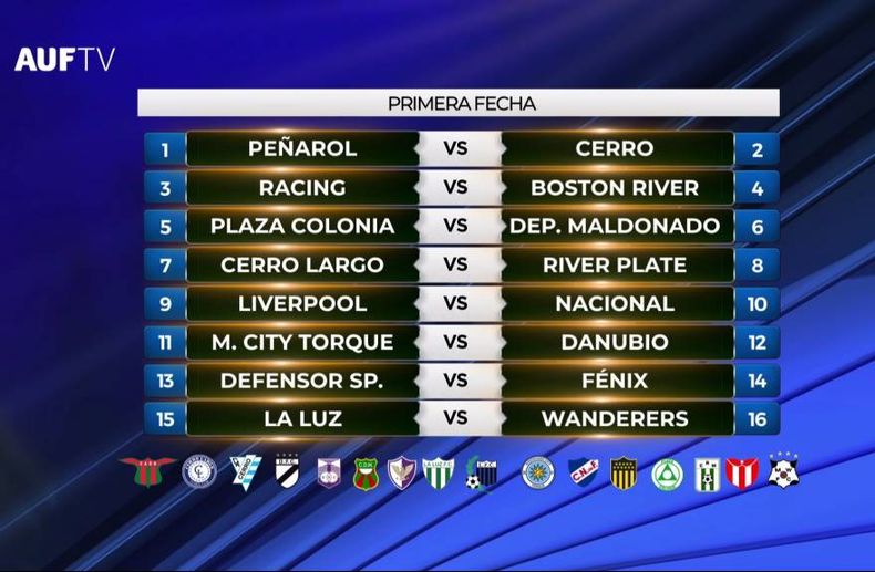 Se sorteó el fixture y quedaron definidas las fechas del Torneo Apertura. El clásico entre Peñarol y Nacional se jugará en la fecha 9, mientras que el duelo del Prado entre River Plate y Wanderers será en la fecha 11.