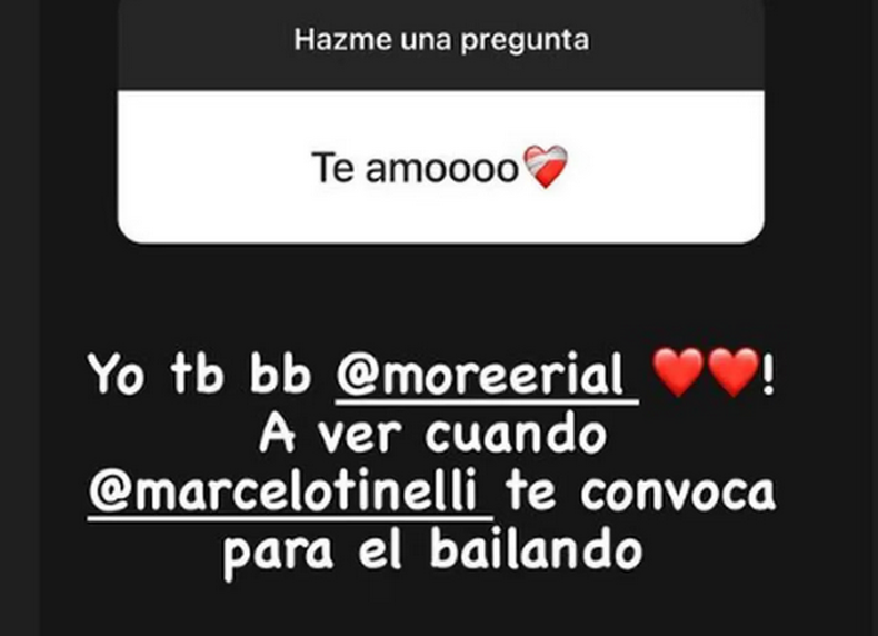 Este fin de semana, Alejandro Cipolla blanqueó definitivamente sus sentimientos hacia More Rial. Después que ella hiciera un posteo con la frase “te amo” y el emoji de un corazón vendado, él republicó ese contenido y lanzó un mensaje que deja en claro que su vínculo excede las cuestiones profesionales. “Yo también bebé, a ver cuando Marcelo Tinelli te convoca para el ‘Bailando’”, expuso. Y rápidamente, ella le respondió: “Te amo amor”.